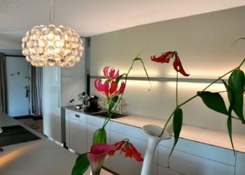 Küche in Bern-West im Licht der untergehenden Sonne