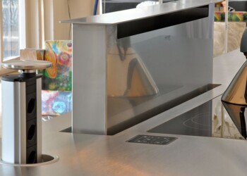 Dachwohnung optimal genutzt. Kochfeld mit Muldenlüftung, Gestaltung: wb-Architekten Bern